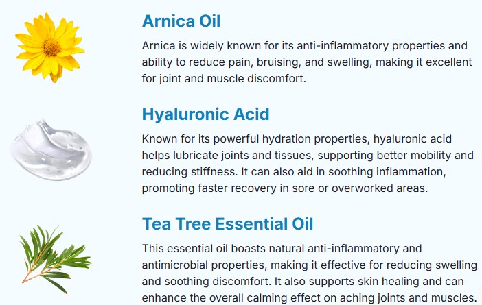Arthro MD+ Cream is crafted with 100% natural, clinically-studied ingredients designed to reduce joint pain and support mobility. Here are its core components: