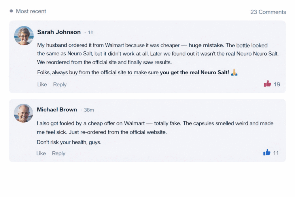 Most “scam” complaints circulating online come from fake bottles sold by third-party resellers, not from the authentic Neuro Salt formula.